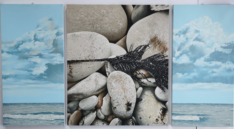 Misure: olio con pietre cm. 50 x 60 - Marine cm. 30 x 60
