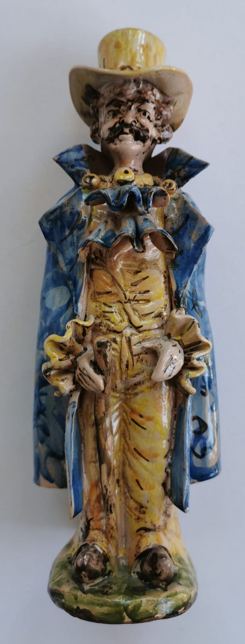 Lumiera uomo con mantello blu in ceramica di Caltagirone